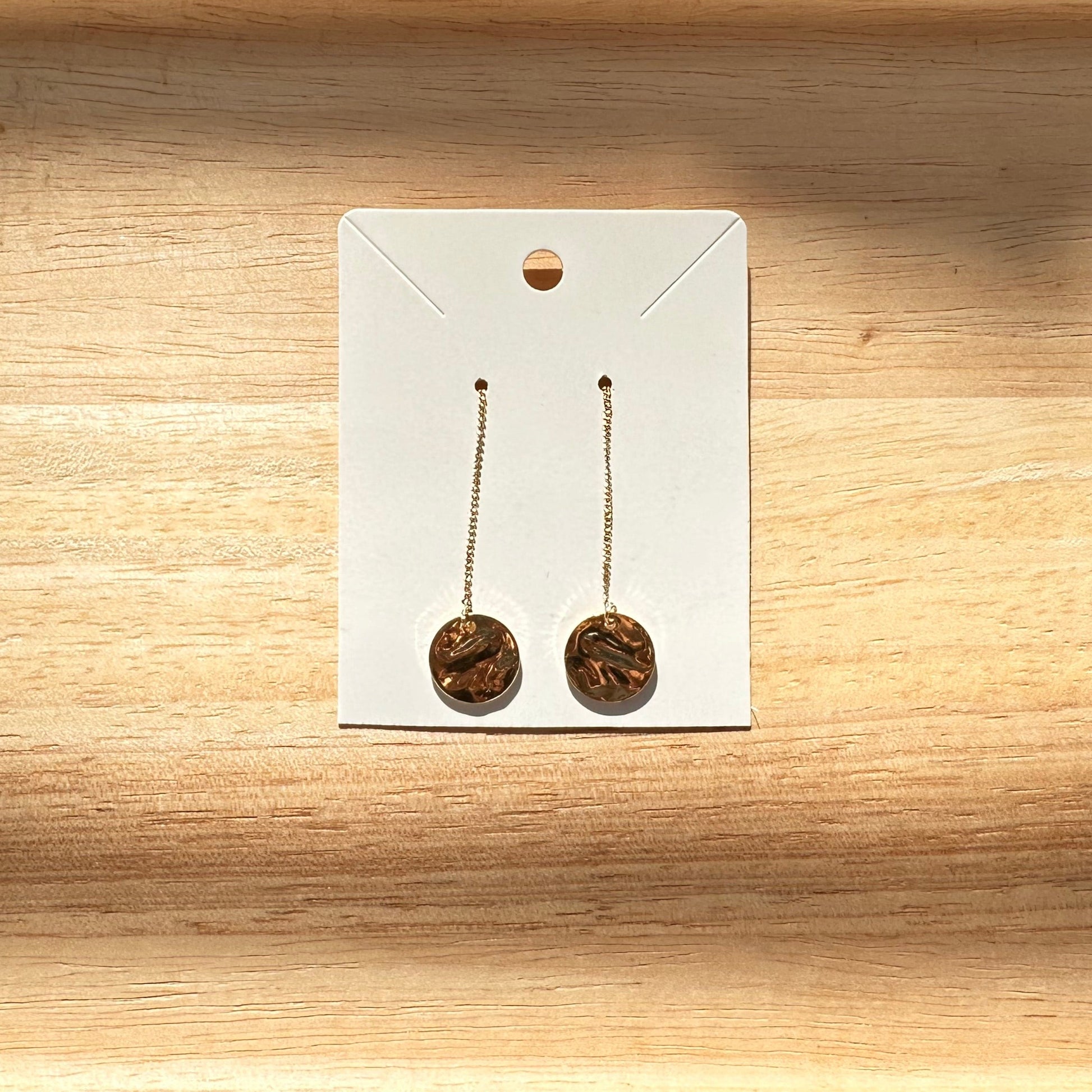 Hammered Gold Pendulum Earrings are a chic and clean piece that captures modern style. Adjustability allows an addition of simplistic flair to any look.